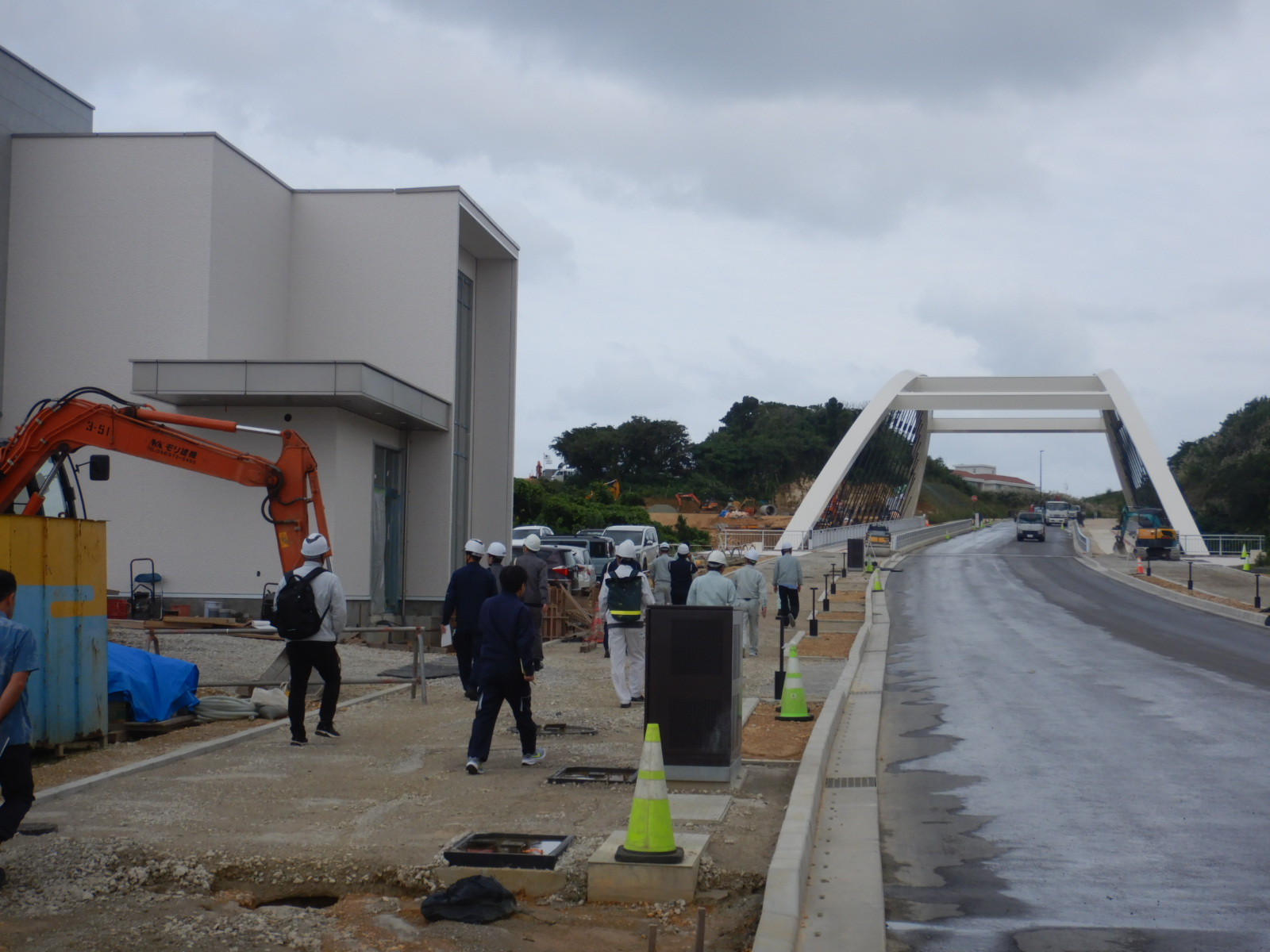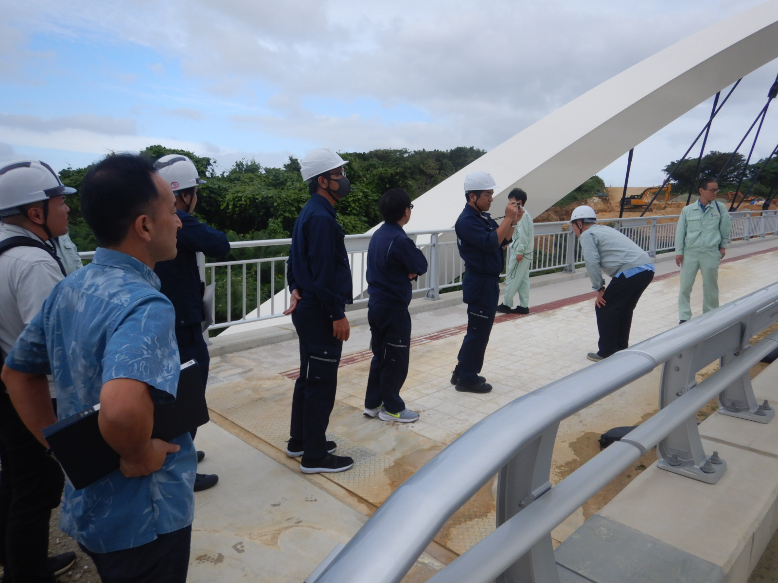 沖縄県土木建築部、宜野湾市の協力を仰ぎ、西普天間地区(橋梁建設工事・琉球大学医学部移転箇所)や、中城港湾(泡瀬地区)にて研修会を開催しました。